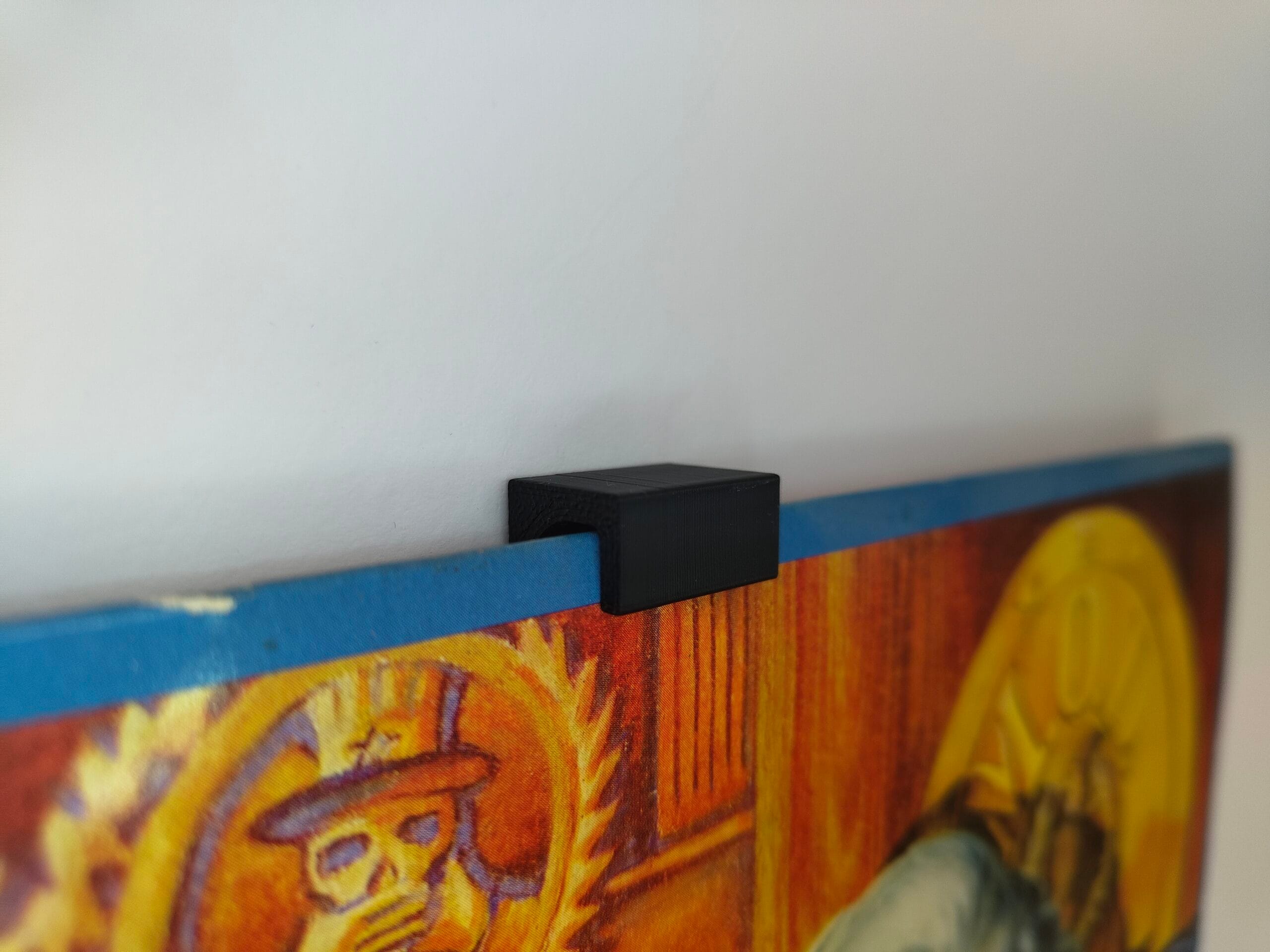 Sujeción de 3 Puntos: Un sistema inteligente compuesto por dos ganchos inferiores de soporte y un gancho superior central que asegura el álbum perfectamente en su sitio.