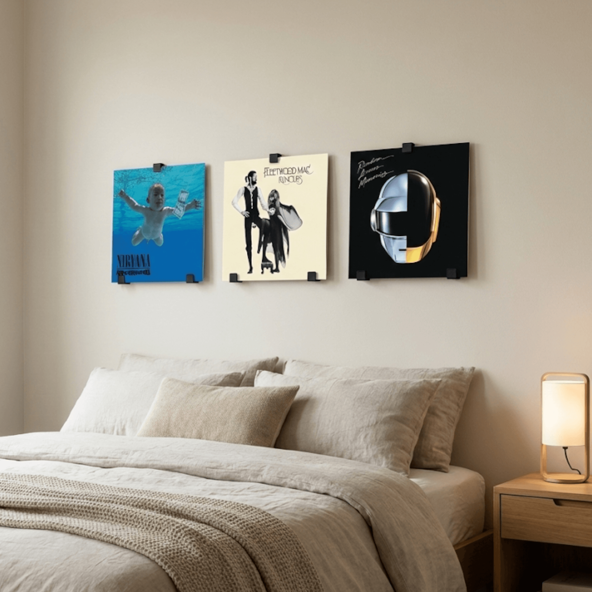 Dale a tu colección el lugar que merece con nuestro sistema de soporte minimalista para carátulas de vinilo (LP). Diseñado para quienes no solo escuchan la música, sino que aman el arte de sus discos.